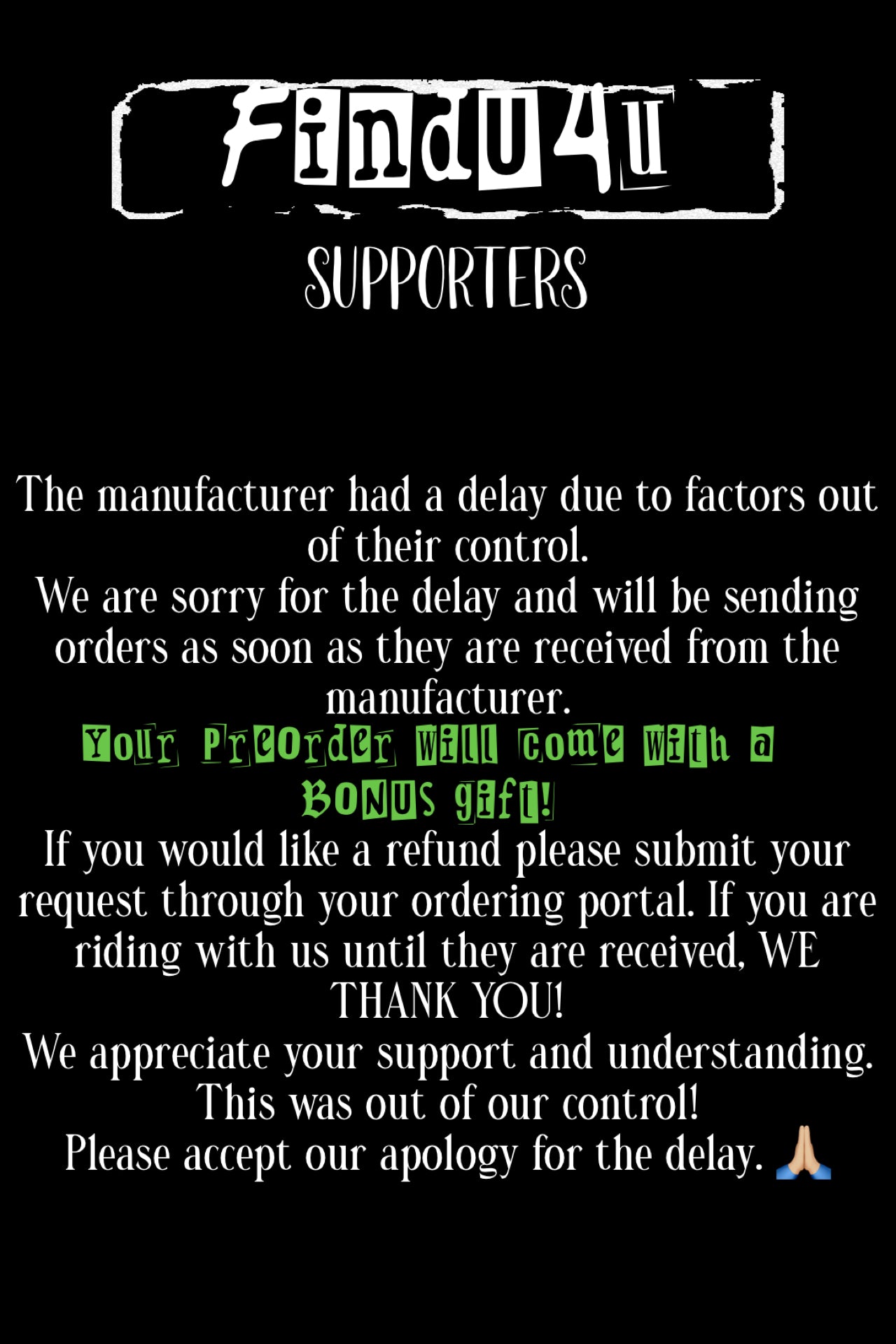 PRE-ORDERS will be shipped within 2-3 weeks of Fulfillment from the Manufacturer. Prior to ordering please understand these are Pre-Orders and therefore are ordered once shop has closed out of PreOrder period.